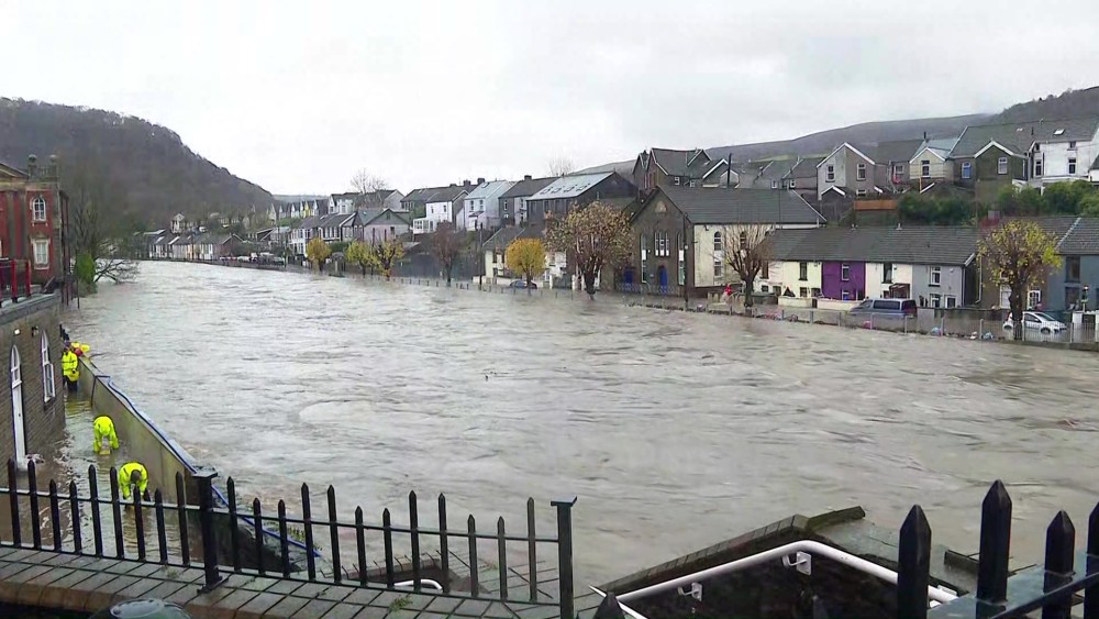 People have been forced to bail out their homes and businesses as communities across Wales face major flooding. Rhondda Cynon Taff council in South Wales has declared a major incident with towns like Pontypridd hit hard by the heavy rain where the River Taff has burst its banks again in Pontypridd.