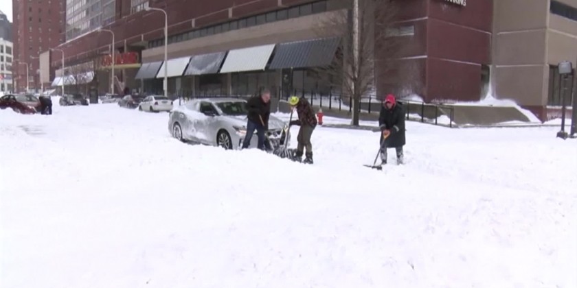 New York City was spared most of the snowfall. People in downtown Cleveland needed shovels to dig cars out of the snow. Vehicles were also seen struggling to drive in the snow in Pittsburgh. Power outages affected tens of thousands of customers, and hundreds of flights were canceled.