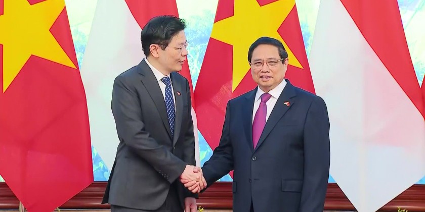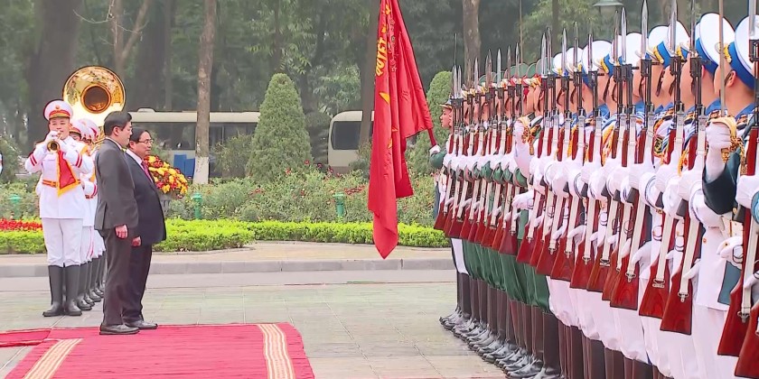 Prime Minister Pham Minh Chinh chaired a solemn welcoming ceremony at the Presidential Palace for Singaporean Prime Minister Lawrence Wong on an official visit to Viet Nam.