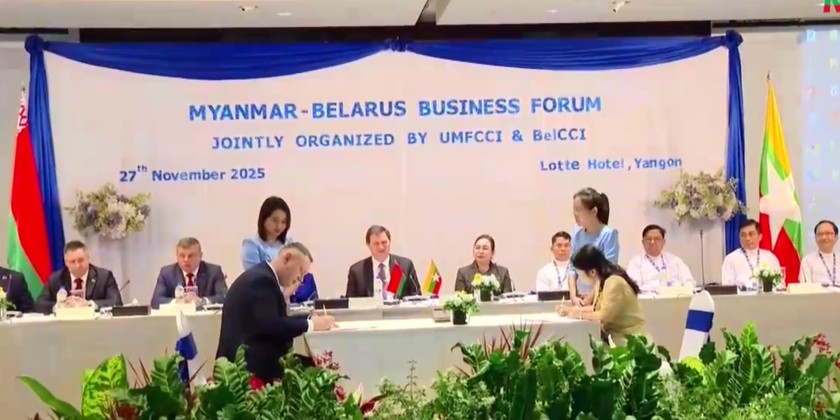 In cooperation with UMFCCI and BelCCI, Joint Myanmar-Belarus Business Forum was held in Yangon on November 27th for boosting economic and investment opportunities between the two countries.