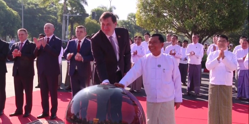A ceremony was held at the corner of Yazathingaha and Thiri Kyaw Swar Roads in Nay Pyi Taw on Friday, to name a road after the capital city, Minsk of Belarus, aiming to strengthen the diplomatic relations between Myanmar and Belarus.