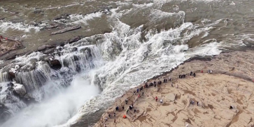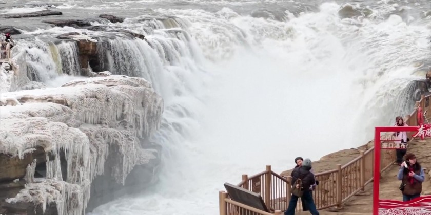 Striking natural phenomena are currently on display in different parts of China, as changing temperatures create unique and beautiful landscapes. In Xinjiang, a frozen lake has displayed massive “star” patterns, while in Shanxi, the famous Hukou Waterfall has re-emerged from its icy winter slumber.