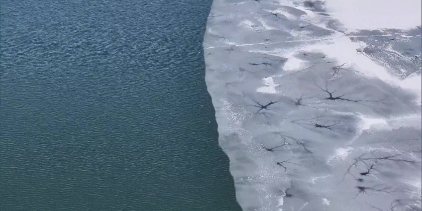 In northwest China, Saixi Lake is presenting a rare spectacle dubbed the “Star of the Ice Lake.” A combination of low temperatures, snowfall, and the local topography has created the stunning view. Water from beneath the frozen surface has seeped through cracks in the ice, spreading out over a thin layer of snow.