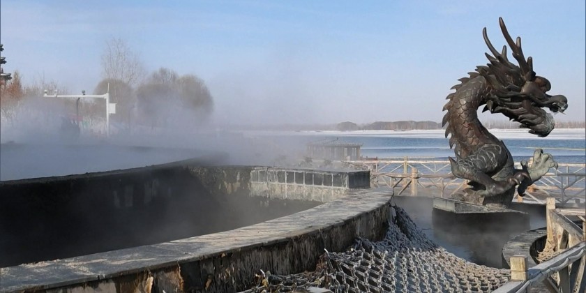 This process has generated giant, star-like patterns across the lake. Adding to the scene’s mystique, another part of the lake remains unfrozen due to geothermal heat. Here, the collision of the lake’s average water temperature of 28 degrees Celsius with the sub-zero air, which has dipped below minus 10 degrees Celsius, creates a misty effect over the water’s surface.