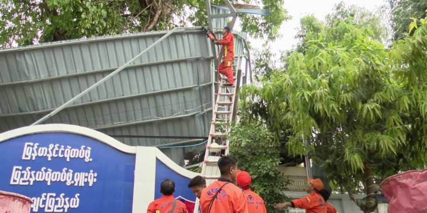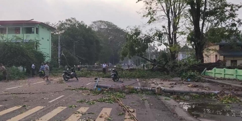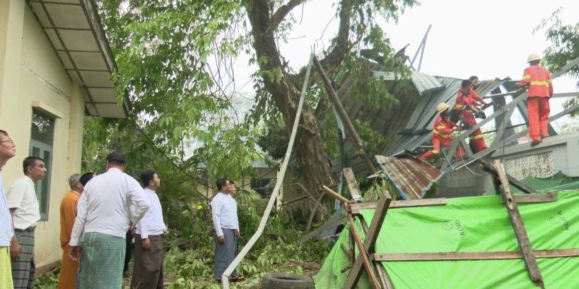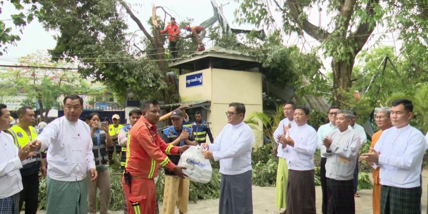 The Chief Minister, together with state ministers, inspected cleanup operations led by firefighters, social welfare groups, and government staff. They praised the teams and provided cash reward. Damages included large fallen trees near monastery, government offices, staff housing, and roads. Restoration work, including repairing electricity poles and clearing debris, is ongoing in Myitkyina and nearby Moe Kaung Township.