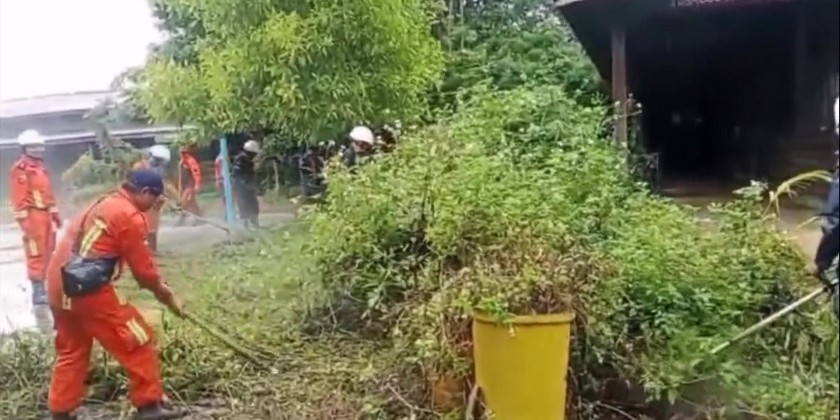 On this day, 105 students of school-going age were admitted to these schools by grade level. The Ministry of Education provided free textbooks, stationery, and school uniforms to the newly admitted students. To ensure a peaceful and clean learning environment, Tatmadaw personnel and departmental staff are clearing bushes and weeds and carrying out other necessary tasks at Basic Education High School No. 2 in Naungcho.