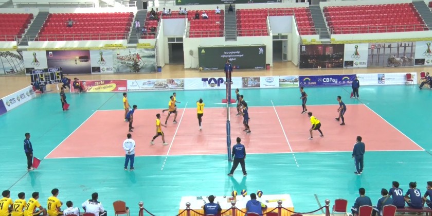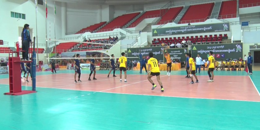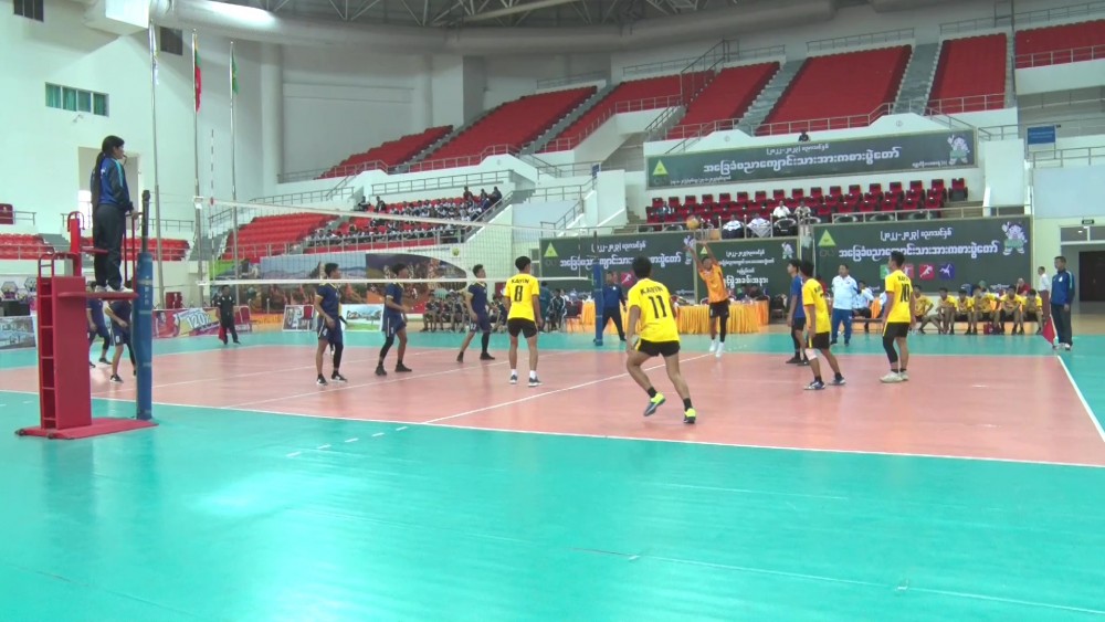 Union Minister for Sports and Youth Affairs U Min Thein Zan together with officials observed competing of Kachin and Kayin States in the Men’s volley tournament of the basic education student sports competition for 2022-2023 academic year at the Wunna Deikdi Stadium-B in Nay Pyi Taw on Monday.