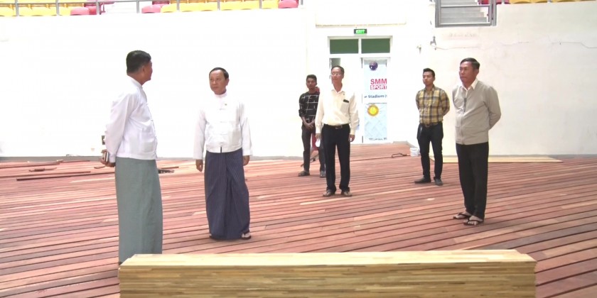 Later, the Union Minister looked into laying new floors at the Wunna Deikdi Stadium (C) and called for meeting set standard and timely completion of the tasks, hanging the photos of competing Myanmar selected athletes and winning prizes, greening tasks at the in front of the stadium and landscaping. He then visited Nay Pyi Taw sports training camp and inspected mess hall and called for safety of the food and the food to be balanced nutrition for the athletes.