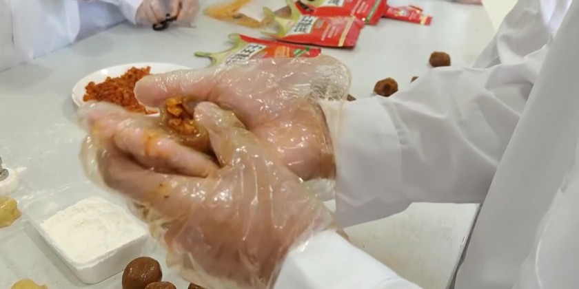 Students make spicy gluten mooncake in Hunan