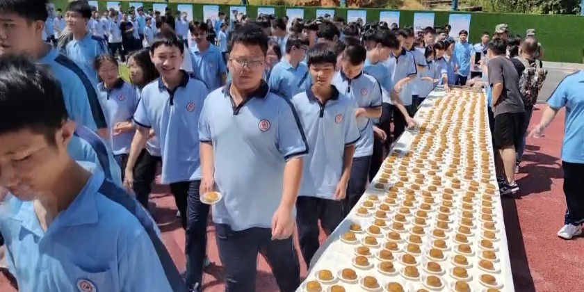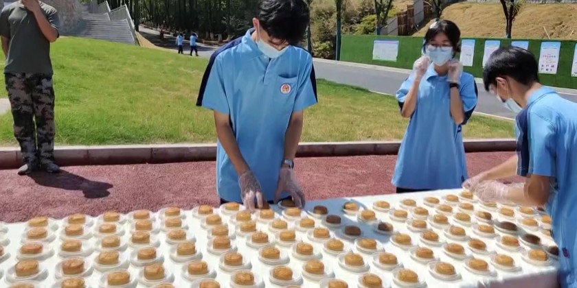 Students made 1,000 mooncakes filled with spicy gluten in south China’s Hunan Province on Thursday. They shared those mooncakes to students and teachers at lunchtime to celebrate the Mid-Autumn Festival.