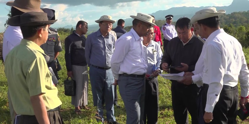 Later, the State Chief Minister and officials visited the site designated for the construction of a football academy in Nyo Mee Field, Hti Paung Village Group, Taunggyi Township. Officials provided an explanation of the site, and the State Chief Minister instructed relevant officials to address necessary requirements.