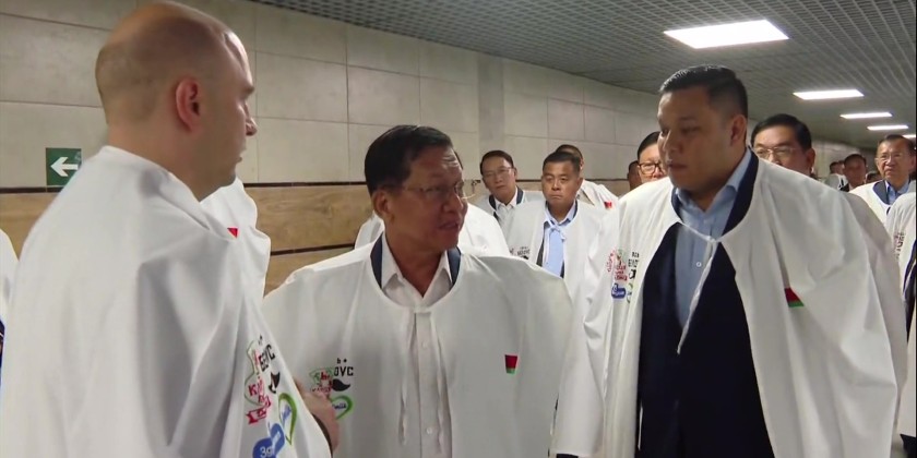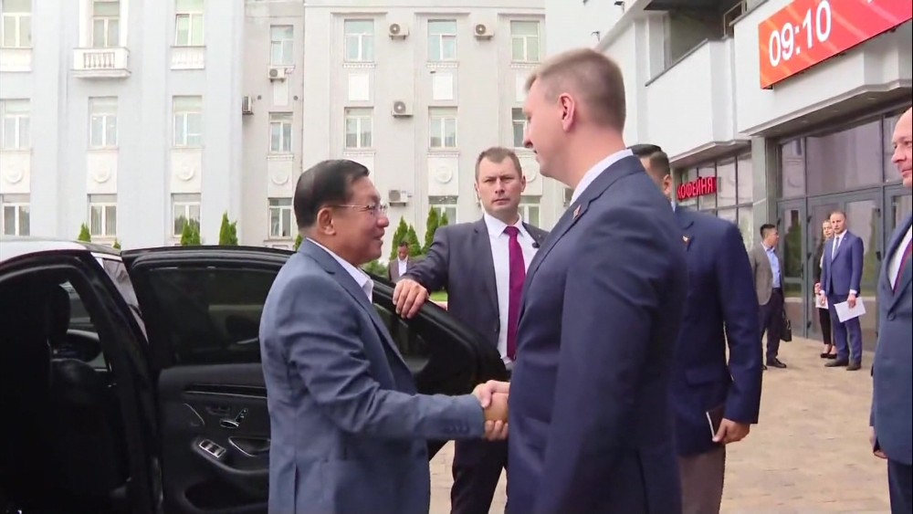 Chairman of the State Administration Council Prime Minister Senior General Min Aung Hlaing and delegation members, during their stay in Belarus, visited Minsk Tractor Works on Friday. They observed the various farm implement used for land preparation, cultivation, nurturing, disaster response, and distribution. They also viewed the assembling process of tractors.