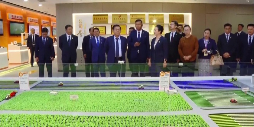 Upon their arrival, the delegation led by the Acting President was warmly welcomed by the officials. They then enjoyed a video clip on company's operations and observed a small farming demonstration, AI-based plowing, planting, harvesting, drone-assisted fertilizer and pesticide application, and the production of high-value agricultural and livestock products and toured company-produced advanced machinery and equipment.