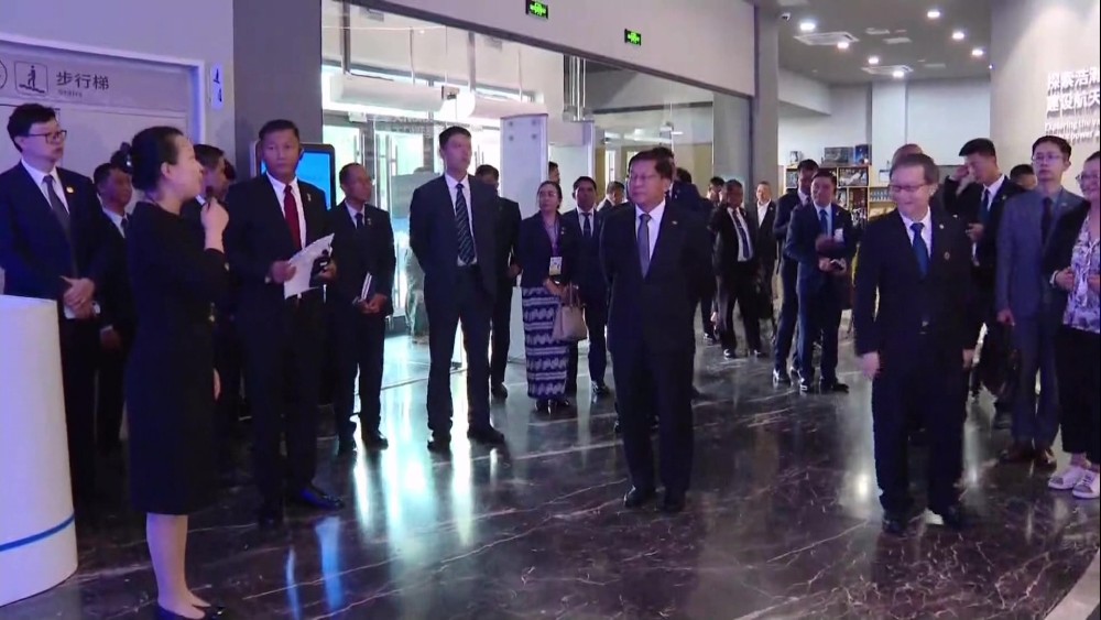 Then, the delegation toured around the gallery display of moon landing, launching satellites and Chinese astronauts. During the visit, the Acting President and SSPC Chairman discussed technology sharing on space exploration between Myanmar and Harbin Institute of Technology.