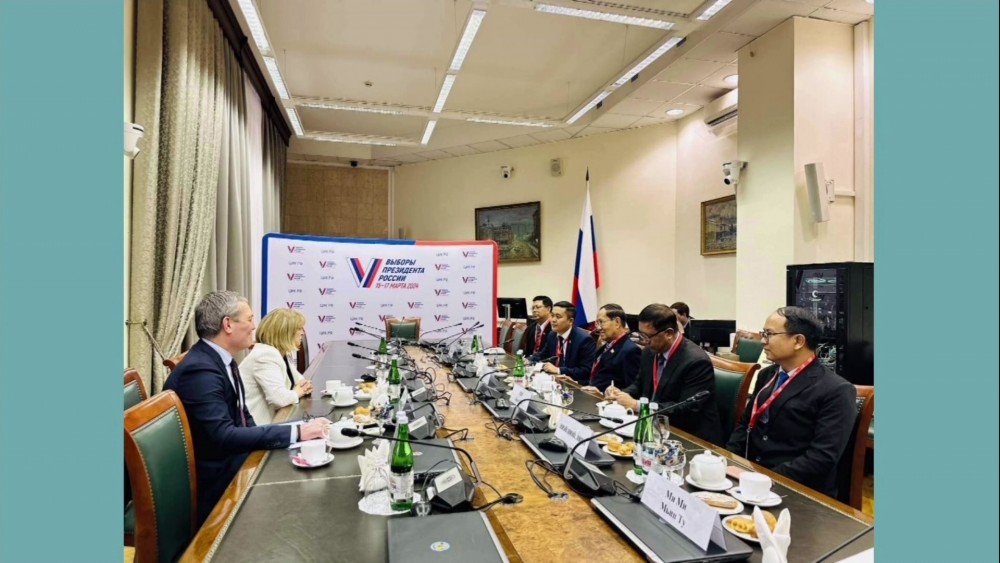 Myanmar delegation led by the Chairman of the Union Election Commission U Ko Ko attended a briefing held at the press center of the Russian Central Election Commission on 13th March.