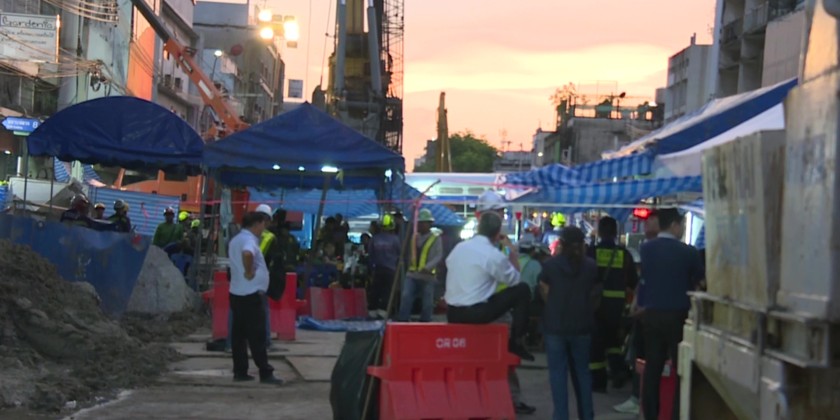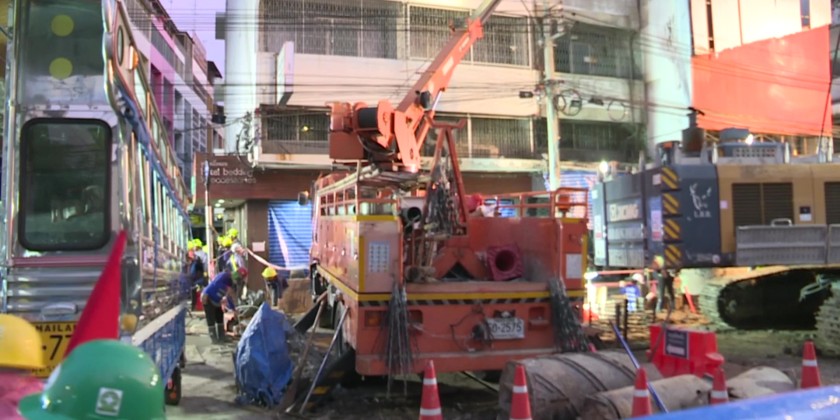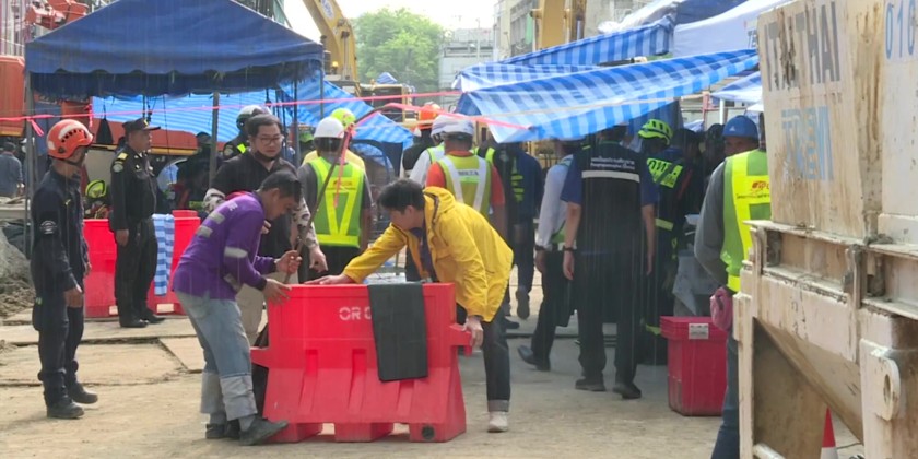 A 33-year-old Thai construction worker has died after falling into a 19-meter pit at a Bangkok subway construction site, with rescue teams still working to retrieve his body. The worker fell into the pit, and subsequently, soil collapsed on top of him.