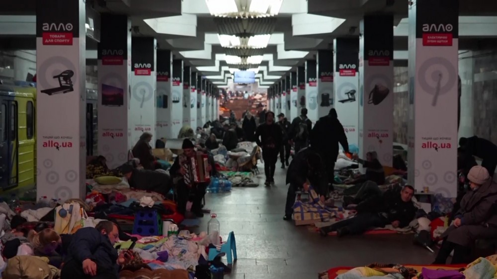 Many still remain in Kharkiv despite half of the city's population having fled since the conflict started on February 24. Kharhiv Metro employee Anastasiia Mazurkowa said there were roughly 700 people sheltering at her station.