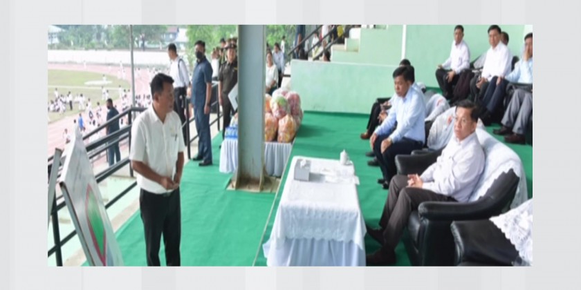 Chairman of the State Administration Council Prime Minister Senior General Min Aung Hlaing inspected the conducting of summer sports training at Danyawady Sports Ground in Sittwe on Saturday.