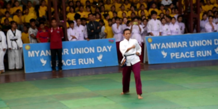Following the speech, the trainees recited the four-point sports oath and dispersed from the venue. The Chief Minister, the Chief Justice of the Region High Court, region ministers, officials, and sports enthusiasts observed demonstrations of Myanmar traditional martial arts (Thaing), judo, taekwondo, and aerobics performed by various groups.