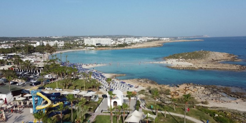With its crystal clear waters, gently shelving golden sand and stunning landscapes, Nissi Beach is one of the Mediterranean island's top tourist destinations, stretches for 500 meters.