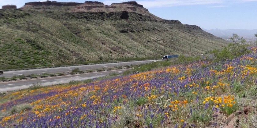 The wet winter in the southwest has resulted in a "superbloom" of wildflowers. Yellow, purple and other colored flowers are blossoming amid the cactus on hillsides near Lake Havasu City, Golden Valley, and other parts of Arizona.In California, some communities are discouraging tourists from coming to see the blooms, to prevent damage to the fragile plants.