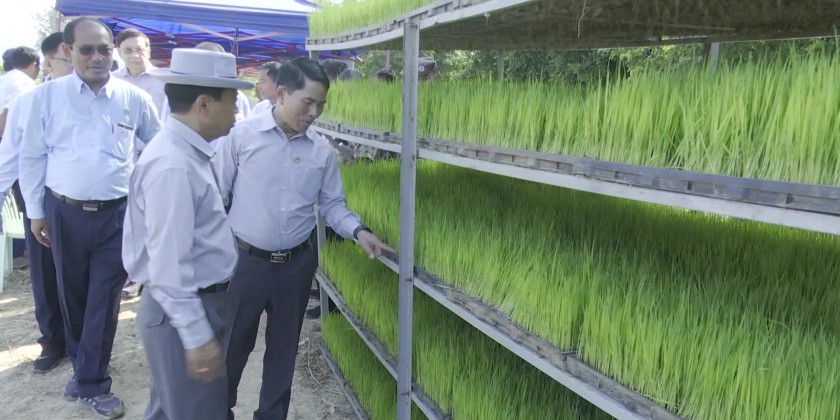 During the inspection, Union Minister urged farmers to cooperate with department to face the natural disasters due to the climate change. The ministry provides free assistance to replant the short-term rice in the 21 acres of farmlands using planting machines with the aims to ensure the food security of the region and socio development of local farmers.