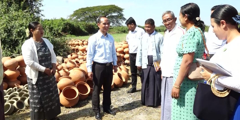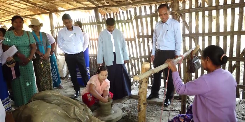 Deputy Minister for Cooperatives and Rural Development U Thaik Soe visited Padaung Township in Bago Region on Thursday to support local pottery businesses and promote the production of roof tiles.