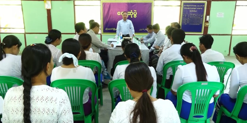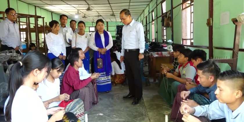 In addition, the Deputy Minister visited a weaving and vocational training school in Shwe Taung Township, and encouraged trainees and instructors to improve skills and modernize weaving work.