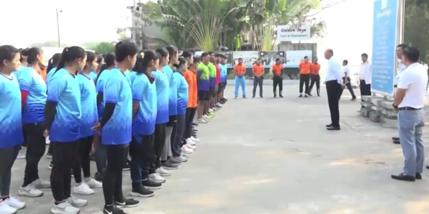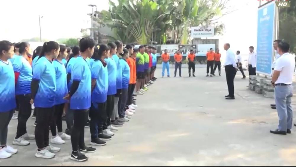 Union Minister for Sports and Youth Affairs Jeng Phang Naw Taung, together with officials, arrived at the Myanmar Rowing Federation Training Camp in Yangon on Saturday. They warmly greeted the rowing athletes and coaches for western boat, traditional boat and canoe/kayak who are undergoing training to compete in the upcoming 33rd Southeast Asian Games to be held in Thailand from 9th to 20th December.