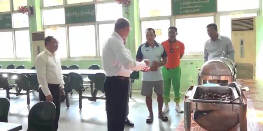 He observed the athletes’ training and encouraged them to work hard to win medals at the upcoming SEA Games. He later inspected the Aung San Sports Complex and the indoor stadium and met with former national track and field athletes. They then proceeded to the Institute of Sports and Physical Education (Yangon) cafeteria, and had lunch together with the trainees.