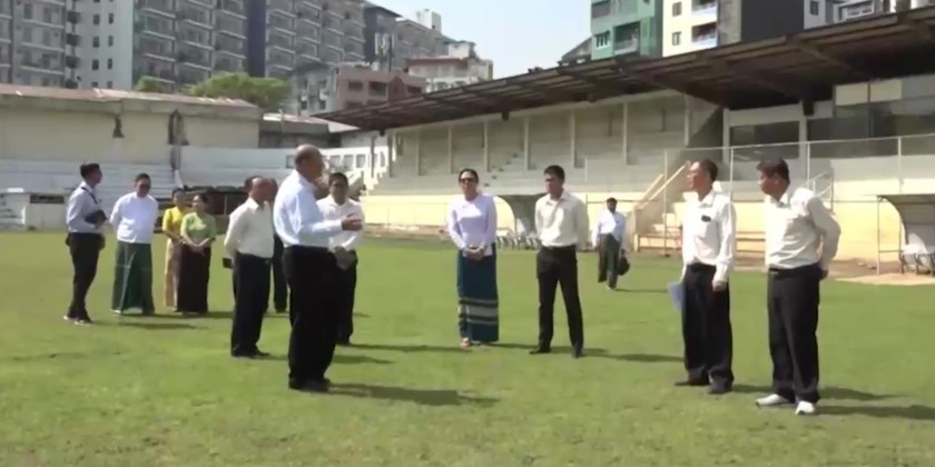 Afterwards, the Union Minister visited the Sanchaung Padoma Stadium and instructed for greening works in the facility. They also inspected Wushu Training Camp and Badminton Court on Kyone Gyi Road, and encouraged the athletes.
