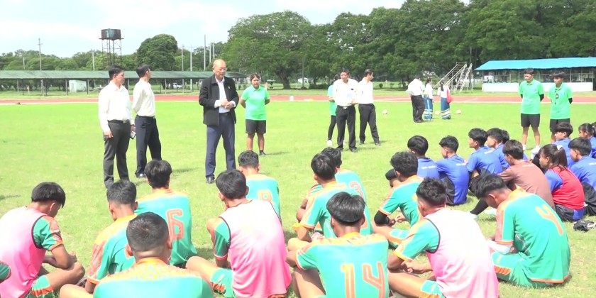 Chairman of Myanmar Olympic Committee Union Minister for Sports and Youth Affairs Jeng Phang Naw Taung visited Kyaikkasan Ground in Yangon on Saturday. He observed the training process of men and women football teams for Myanmar National League and Myanmar Women League.