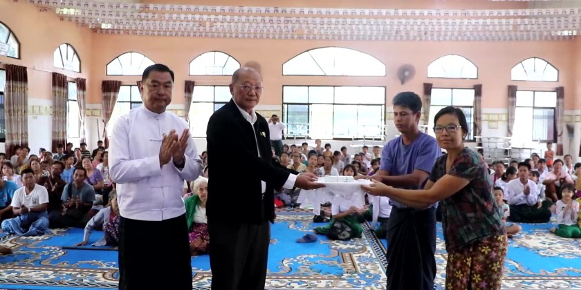 There, the Union Minister viewed the practicing of U-25 Women’s football team and made encouragement. He also attended the aid distribution event for displaced persons who are taking shelter at Naung Yar ward and Antaw Shin monastery.