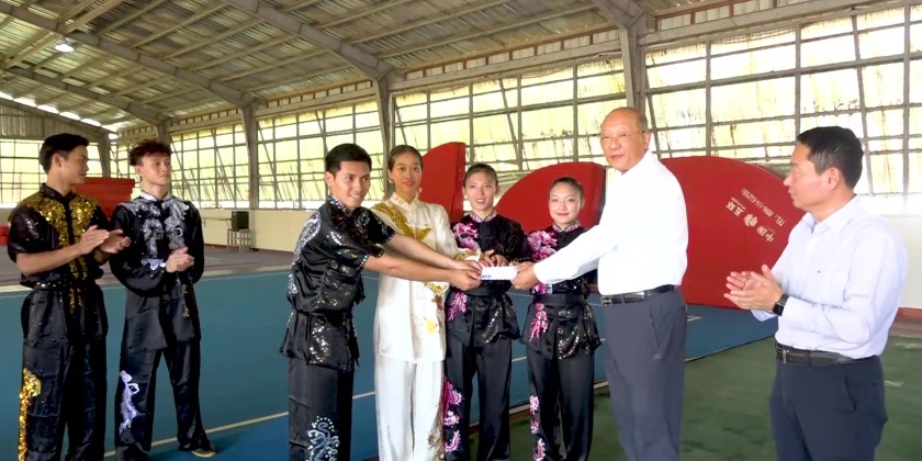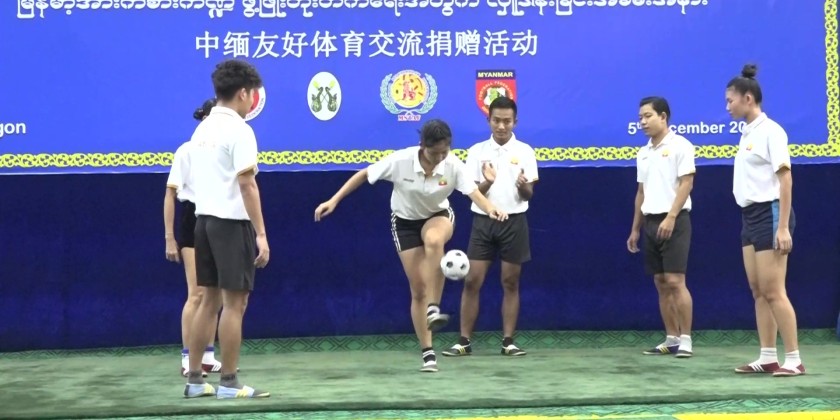During the ceremony, cash awards were presented to Myanmar Wushu Federation, Myanmar Rowing Federation, Myanmar Sepak Takraw Federation, and Myanmar Football Federation. Then, the Union Minister presented honorary certificate to the Chinese Ambassador to Myanmar in return and enjoyed the demonstration of cane ball and wushu athletes.