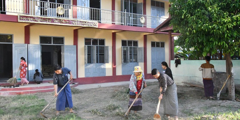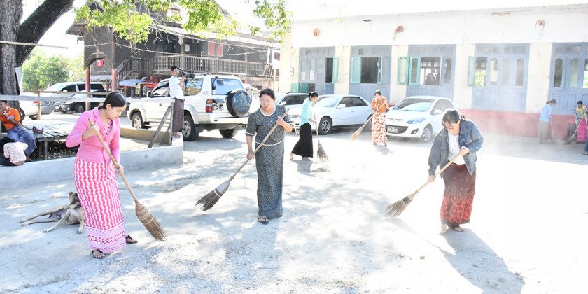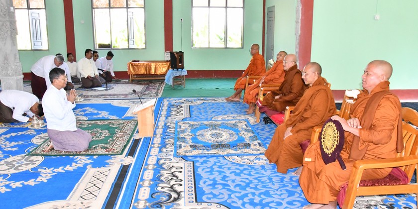 After submitting the religious matters, the Union Minister donated over 2.4 million kyats worth rice, edible oil, salt, beans and pulses and offertories as well as Uppata Sandhi Gadha Pali Books. The ceremonies concluded with sharing the merit gained. After the ceremonies, the Union Minister and party encouraged the staff, carrying out the cleaning works in the monasteries.