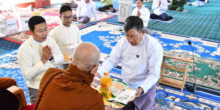 Union Minister for Religious Affairs U Tin Oo Lwin, together with Deputy Minister U Aye Tun and officials, attended a donation ceremonies to Inn Dine Thar and Thayet Khon Monasteries in Nay Pyi Taw Lewe Township on Saturday.