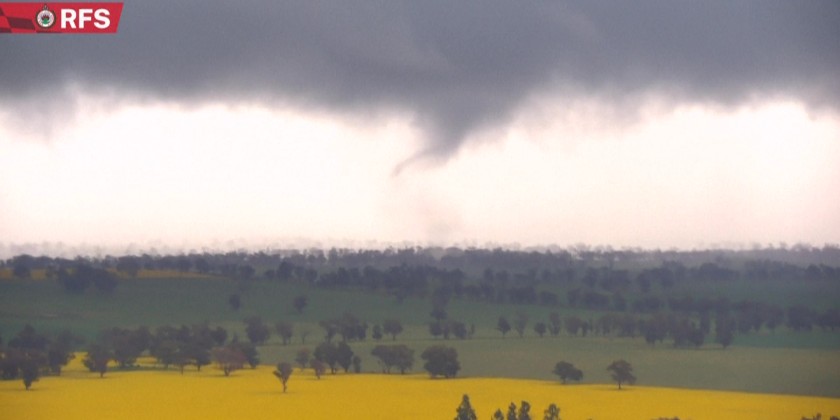 An Australian fire surveillance camera on Wednesday captured dramatic video images of a tornado, towering over a thunderstorm-struck stretch of countryside. Authorities issued a severe storm warning after the twister emerged in the mid-afternoon, swirling over a lightly forested rural area about 260 kilometres inland from Sydney.