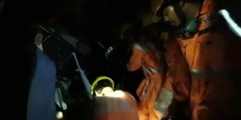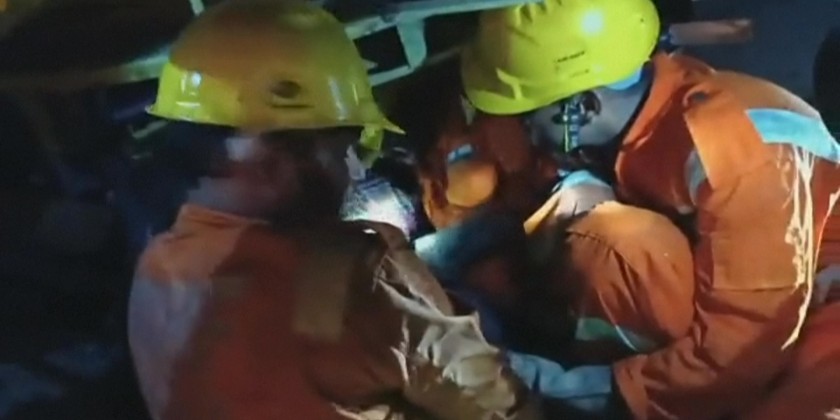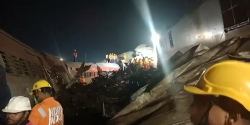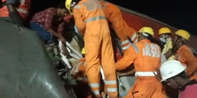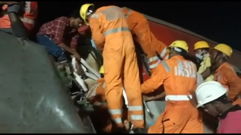 Rescuers pull out a victim from the train wreckage after a three-train collision late Friday in eastern India's Odisha state that has killed at least 207 people and more than 850 were injured, many others are feared trapped, according to officials.