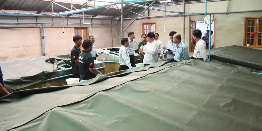 They also inspected the implementation of solar-power pumping system at Pahtaw Dam which will facilitate the operation of Cold Storage Factory and Palm Oil Mill as well as power supply to the locals. They also inspected prawn and soft-shell crab breeding, production of value-added marine products, diagnosing fish and prawn diseases and laboratory works.