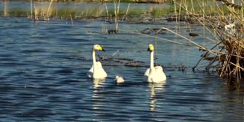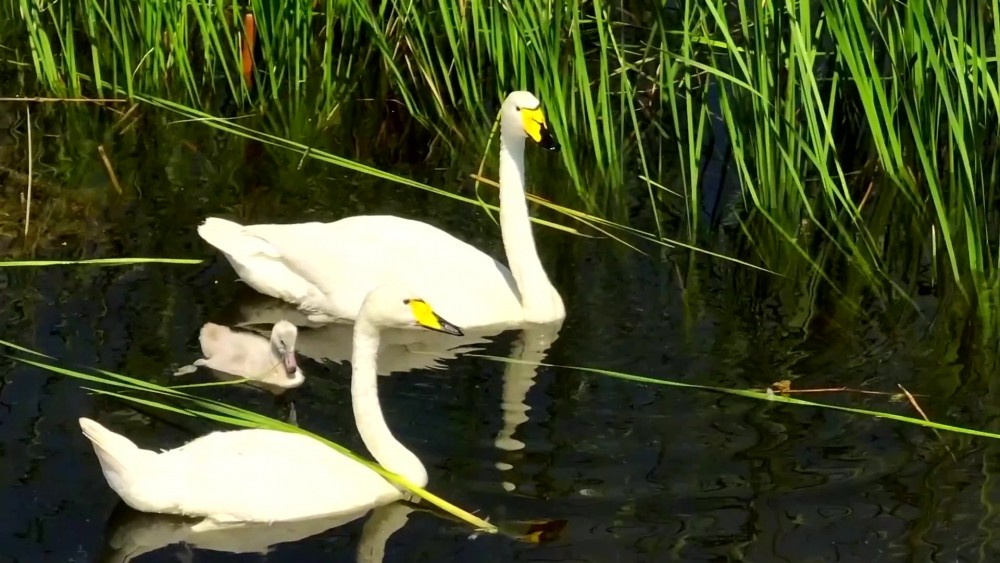 A couple of wild whooper swans have been found to reproduce naturally in the Manas National Wetland Park in Xinjiang Uygur Autonomous Region, which is the second time that whooper swans have successfully bred in the wetland.