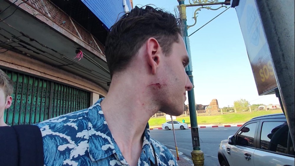 The victim, Mr. Joel Gilbert, and three Swedish friends visited Lopburi province to pay their respects to the Phra Karn shrine and then toured Phra Prang Sam to watch the monkeys in the area. Mr. Joel, sustained a 2-centimeter wound on his right neck after being bitten by one of the local monkeys.