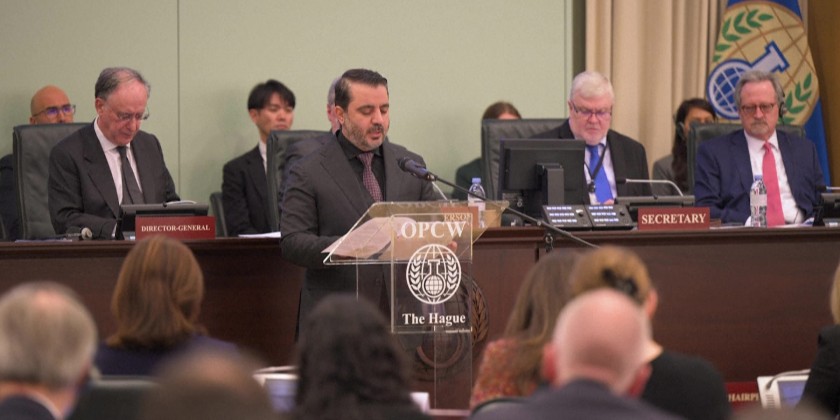 Addressing a meeting of the Organisation for the Prohibition of Chemical Weapons in The Hague, Asaad al-Shibani vowed to "put an end to this painful legacy, to bring justice to victims, and to ensure that the compliance with international law is a solid one".