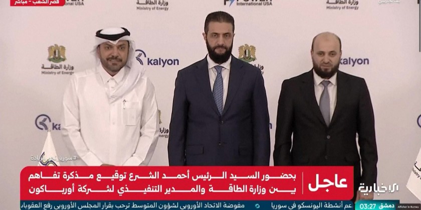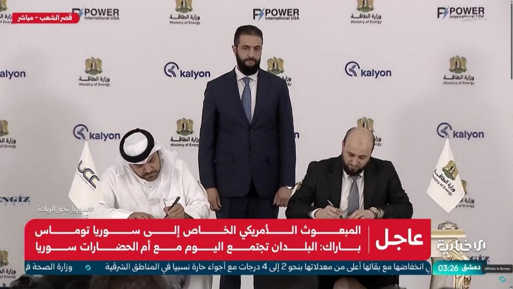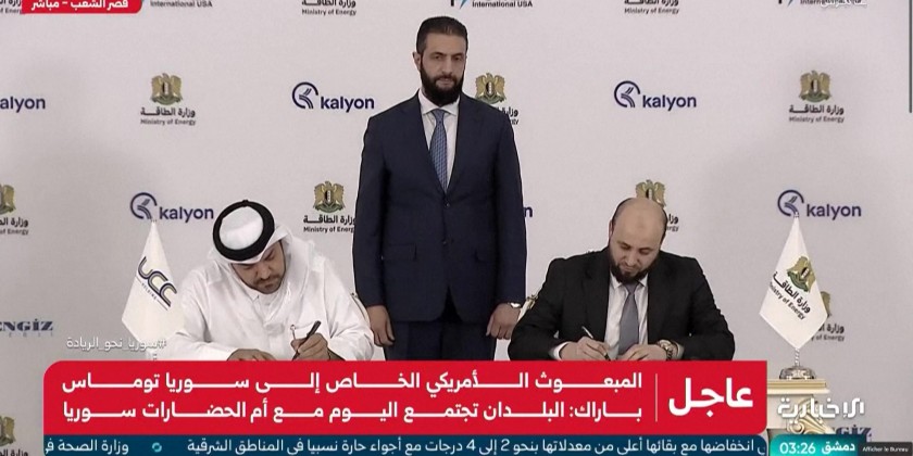 Syria signed a $7 billion energy deal on Thursday with a consortium of Qatari, Turkish and US companies as it seeks to revive the country's crippled power sector. The agreement was sealed at the presidential palace in Damascus in the presence of interim President Al-Sharaa and US ambassador Thomas Barrack. It aims to generate 5,000 megawatts.
