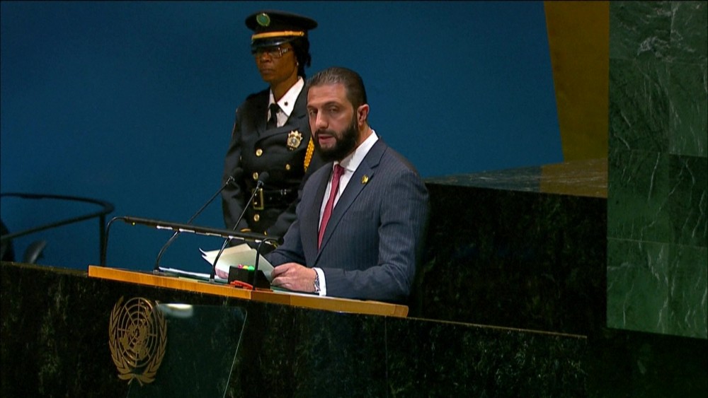 Sharaa said Syria has restored international relations, forged regional and global partnerships, and achieved the partial lifting of sanctions. He went on to appeal for the full lifting of sanctions so they no longer "shackle the Syrian people.
