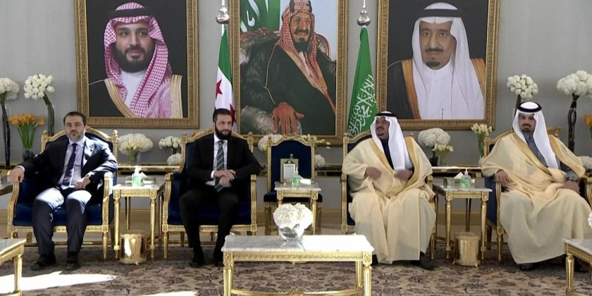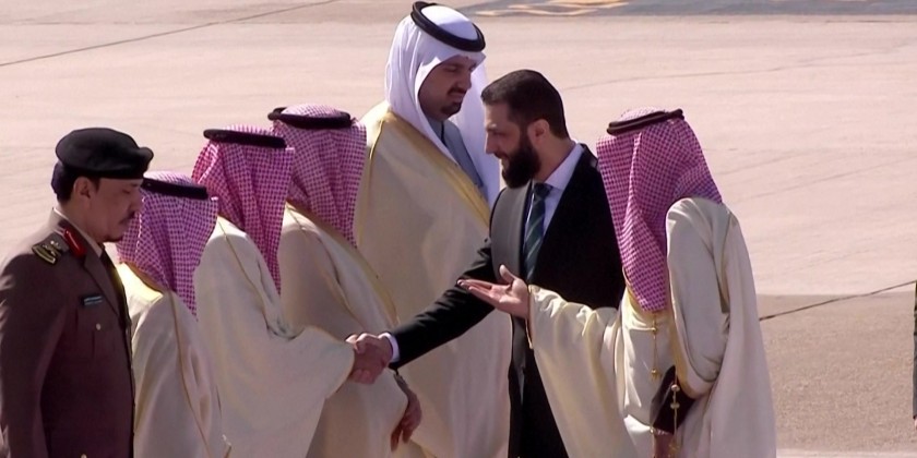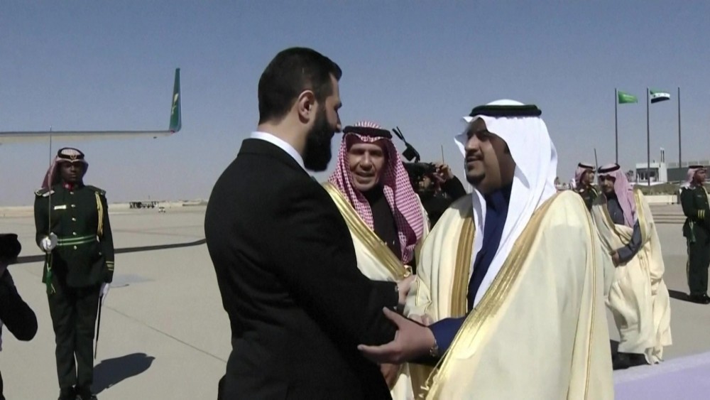 Syria's interim president Ahmed al-Sharaa arrived in Saudi Arabia on Sunday for his first international visit. Accompanied by his foreign minister, Sharaa was greeted by Saudi officials. Syrian state news agency also reported the pair would meet with Prince Mohammed in Riyadh, without providing further details.