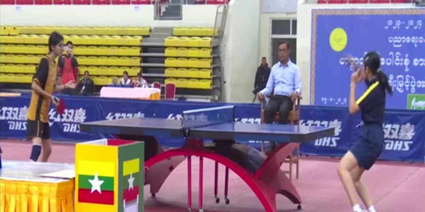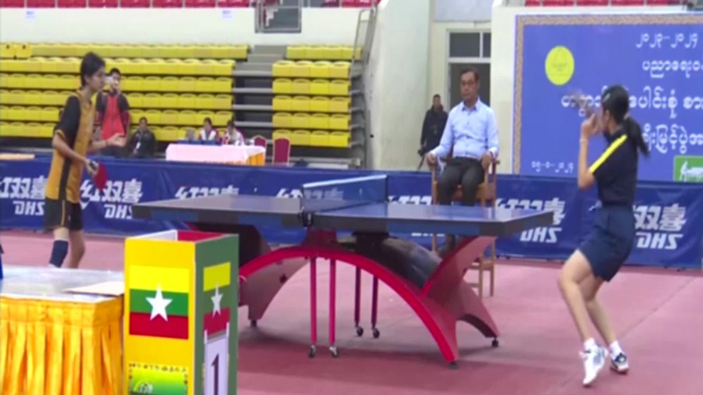 Union Minister for Education Dr. Nyunt Pe, Deputy Minister Dr. Zaw Myint, Directors General, Rectors, Deputy Directors General and officials together with the spectators enjoyed the final matches of Table Tennis held at Wunna Theikdi Stadium B.