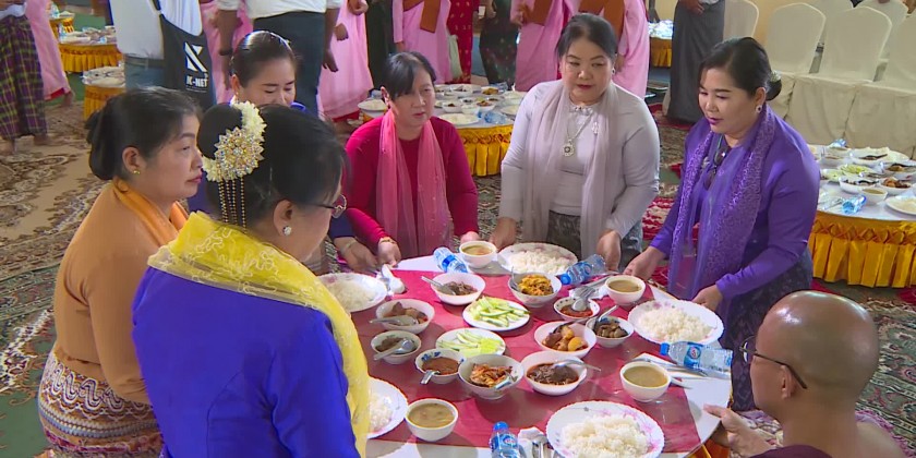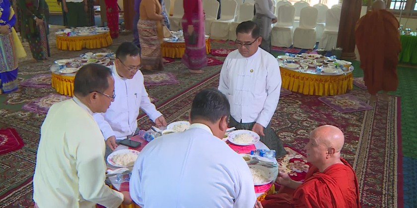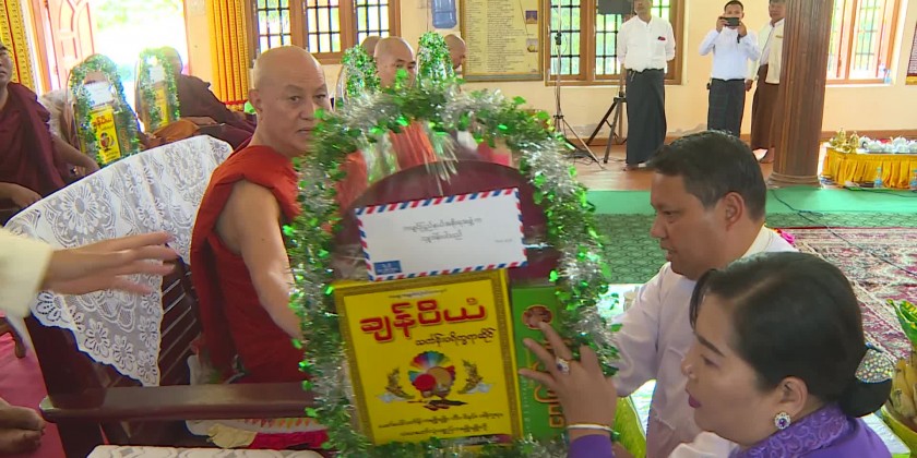 At the ceremony, Chief Minister U Khat Htein Nan and wife, Chief Justice of state high court, State Ministers and their wives and family members of personnel who enter into the order of Buddhist Monks and Nuns donated offertories and offered alms food to Myit Kyi Nar Township, WonTho Monastery presiding Sayadaw Baddanta Ketumala, members of sangha and newly ordained monks and nuns.