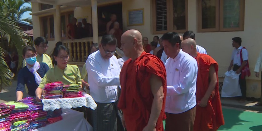 Led by Kachin State Government, a ceremony of temporary entering into the order of Buddhist Monks and Nuns of the personnel serving duties in Kachin State was held at Myit Kyi Nar Township Abbot Training School on 8th April.