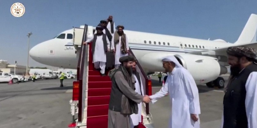 A plane carrying a delegation from Afghanistan's Taliban government landed at Doha International Airport on Friday to participate in talks with Pakistani officials.