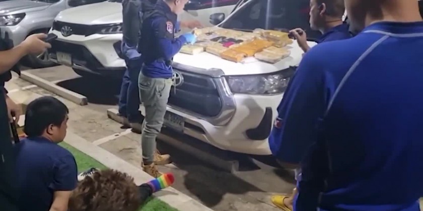 The Police found 216,000 methamphetamine tablets in their car. The two suspected drug traffickers have been identified as “Narongsak” and “Yutthaphol”, who police say is the vice chairman of a TAO in Nakhon Phanom province. Yutthaphol denied he had anything to do with the illicit drugs, which were hidden under the rear seat upholstery.Police had been surveilling them for quite some time. Police said that the meth pills were intended for distribution to dealers.